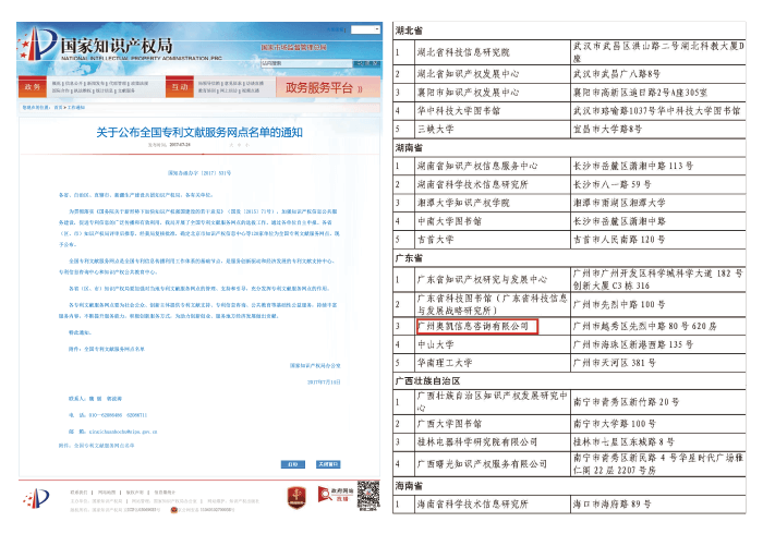 全国专利文献服务网点名单公示